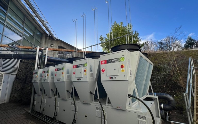 In December, five mighty Lochinvar Amicus Altus heat pumps were dramatically craned over the top of our building (yes, it really was as cool as it sounds) and placed beside the plant room. On 28th January 2026, Cllr Martin Tod, Leader of Winchester City Council, officially commissioned them and they’ve been humming away beautifully ever since.